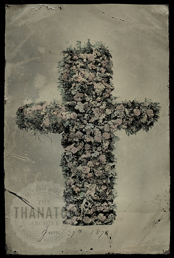 A second photo of the same funeral cross. This one is much larger than the boys’ photo, measuring 6.5″ x 4.25″, and is hand-colored.