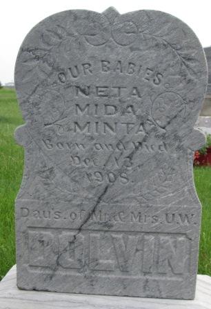 | Inscription: Our Babies Meta Mida Minta Born and Died Dec. 13, 1908 Daus. of Mr. & Mrs. U. W. Dolvin |