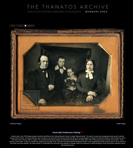 Members: Don’t forget the “Mourning & Memorial” section of our site. Here is the newest addition to that section. Full-size and description is available here (members only): [ Posthumous Painting ] >>>> NOT an Archive member? Review options here: http://www.thanatos.net/membership