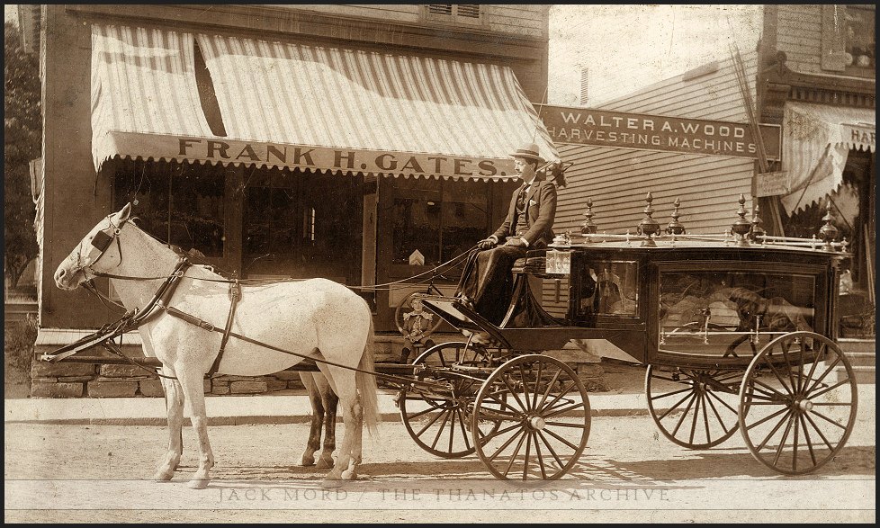 Undertaker Frank H. Gates with his new hearse. Edmeston, NY, circa 1900. Log in to view our entire collection, or create a new account for free – please consider making a small donation to help support our work: The Thanatos Archive