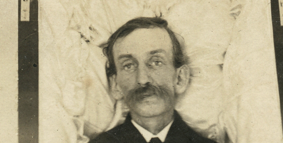 Close up of view of Archive image 3560. The entire photo, his name, location, cause of death are all available here (Thanatos Archive membership is required to access. Not yet a member? Review Thanatos Member options here ).